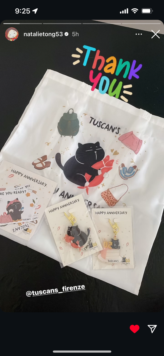 The artwork was rolled out across Tuscan’s social media platforms and website, featured as in-store visual decorations, and adapted into a range of gift-with-purchase items, allowing customers to engage with the anniversary campaign both online and offline.